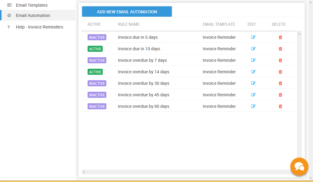 - Click on "Invoice reminders" in the menu on the left and select "Email Automation"